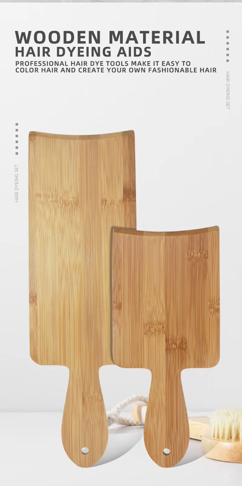 The bamboo and wood hair dyeing brush bowl set is a high-quality tool set designed for home hair dyeing, including a hair dyeing brush, a hair dyeing bowl, a stirring rod and a highlighting board. The size can be freely selected. This set is made of environmentally friendly bamboo and wood materials, which is comfortable to the touch, durable and easy to clean. Suitable for various hair dyeing, care, hair dyeing cream preparation and other purposes, so that you can easily achieve professional hair dyeing effects at home.