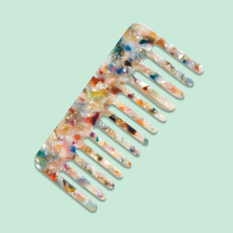 This material is tactile, flexible and strong,a non-petroleum based plastic derived from plants that has been found to create less static in hair.this wide comb Perfect for the beach, to keep in your bag or purse and for travel.