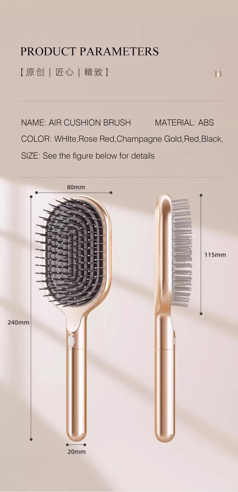 Will the metal steel pin comb cause damage to the scalp: A: The design of the metal steel pin comb has been carefully polished, and the comb teeth are smooth and will not pierce the scalp. Be gentle when using it and avoid pulling hard.